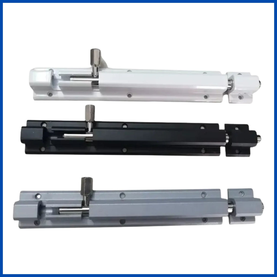 Se fijan sobre la superficie de la puerta o marco, permitiendo deslizar una varilla para bloquear el movimiento.